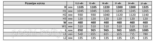 Котел виготовлений із якісної жароміцної сталі 5 мм, обладнаний водонаповненими колосниками. ККД становить 86%.