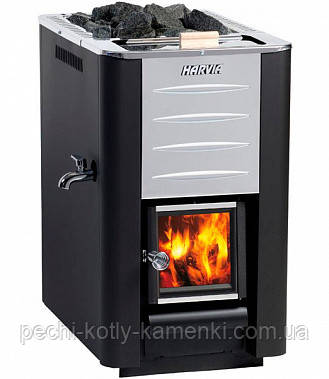 Дровяна піч Harvia 20 ES Pro є комбінованою моделлю, яка не тільки відітопить парне приміщення об'ємом від 8 до 20 м, а також дасть змогу отримати гарячу воду.