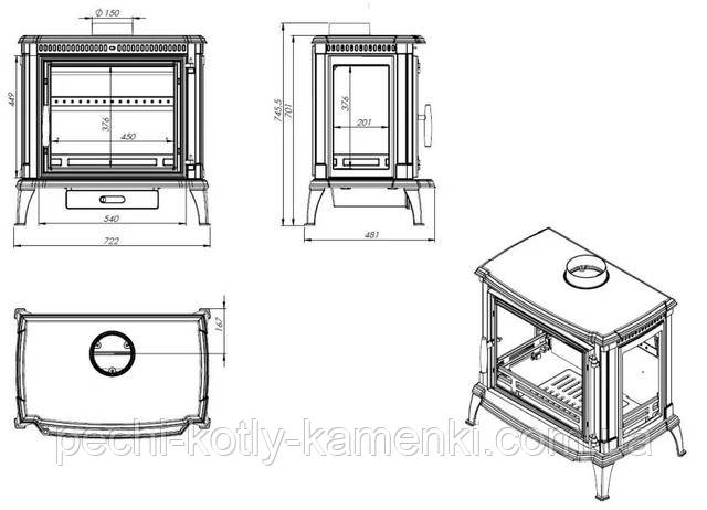 Особливістю даної моделі є наявність трьох жароміцних стекол - у фронтальних дверцятах і з боків корпусу. Ручка завантажувальних дверцят не гріється.
