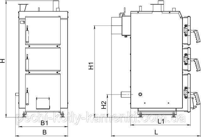 Працює котел на вугіллі, дровах, паливних брикетах.